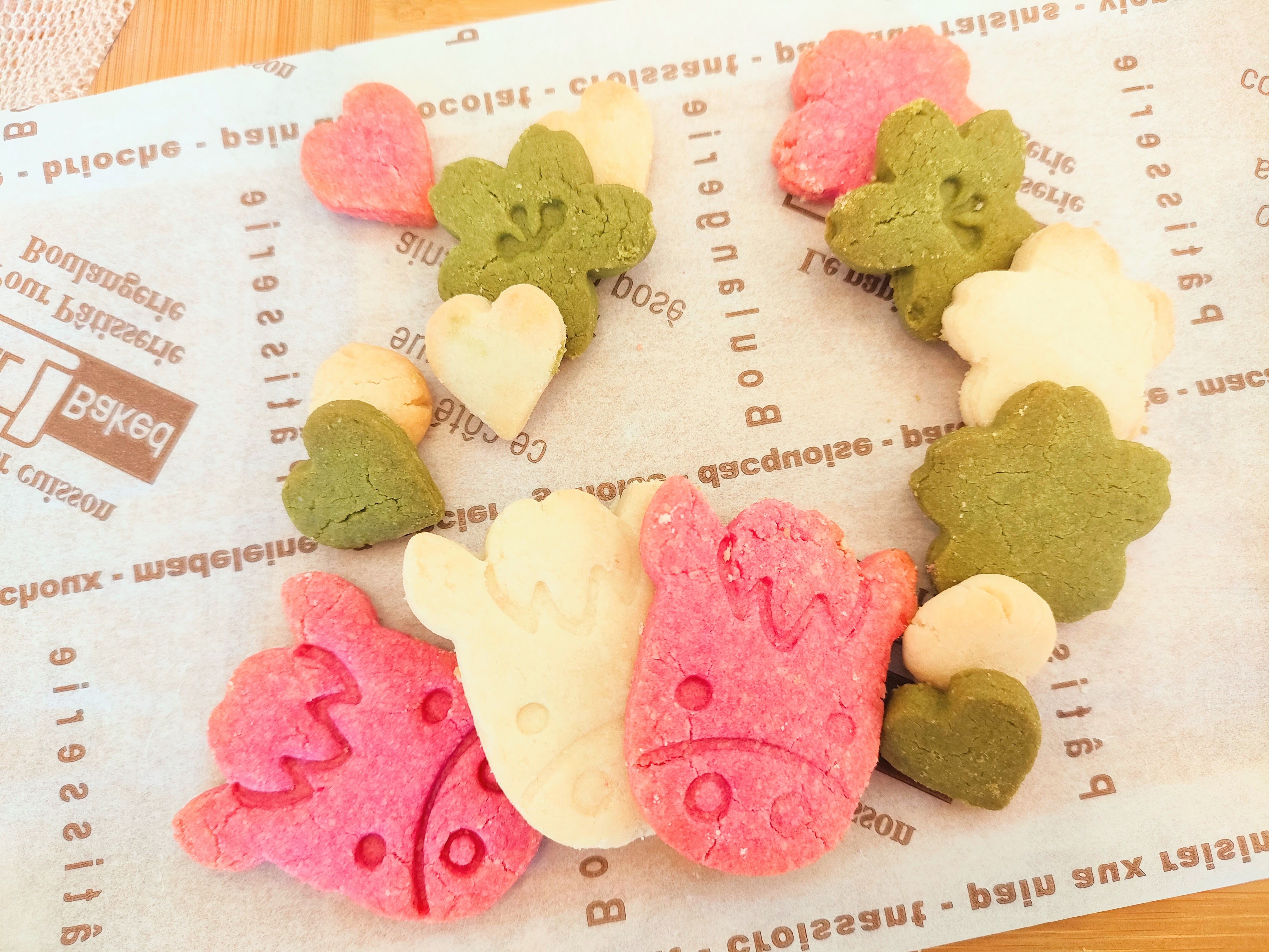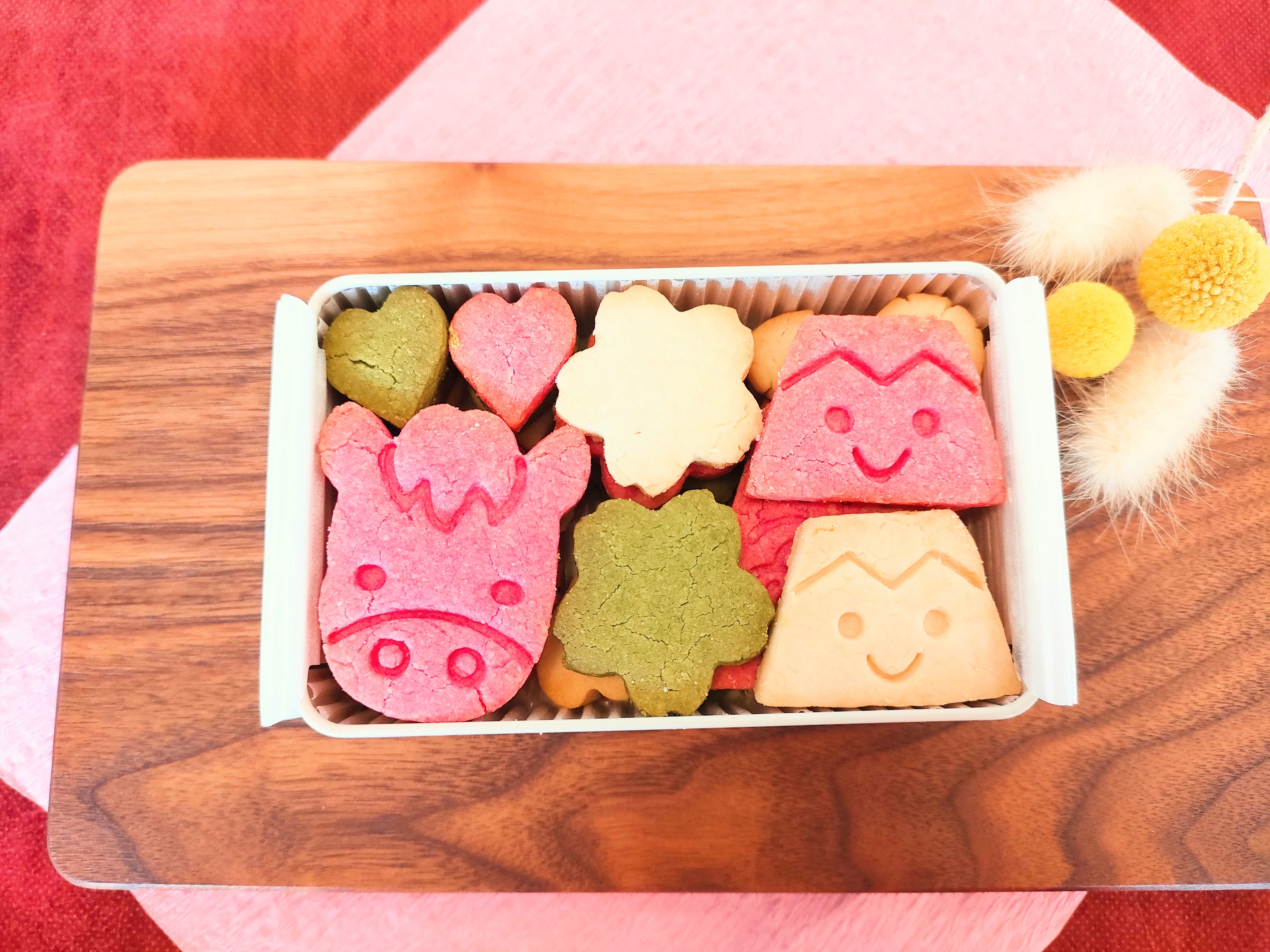 ※抹茶を沢山使っているため、抹茶の緑が白や赤のクッキーについてしまうことがあります。
